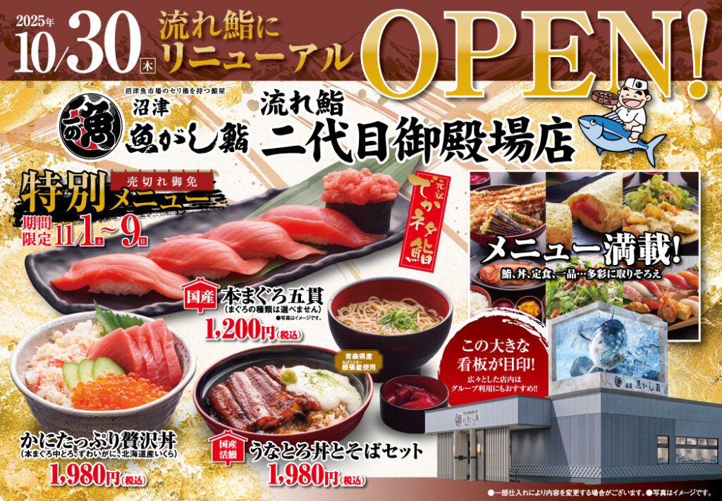 ✨リニューアルオープンで新しく生まれ変わった「流れ鮨二代目魚がし御殿場店」
