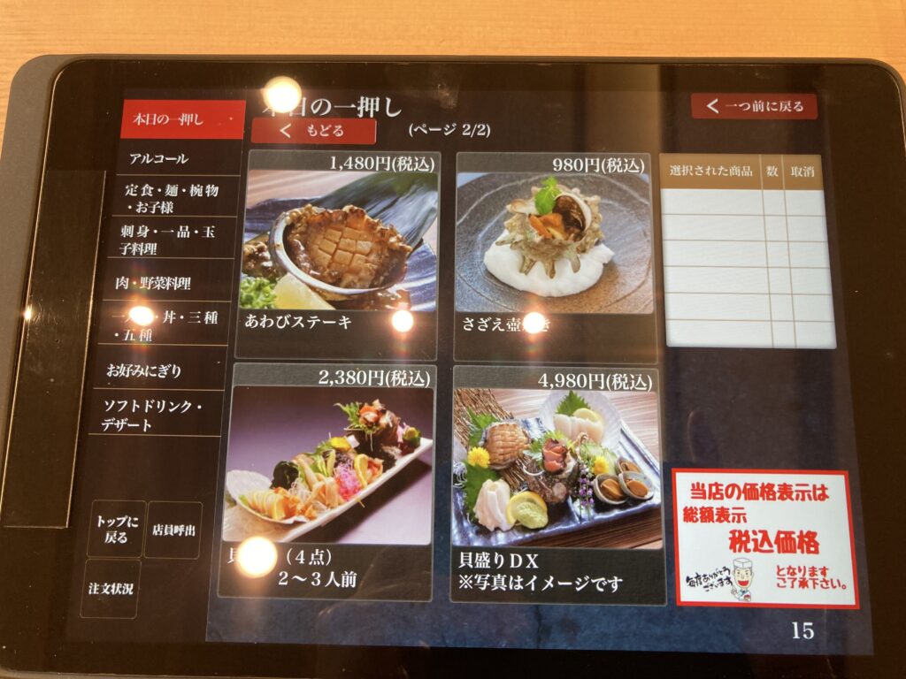 テーブルに設置されたタブレットで簡単にオーダーできます。外国語対応もしているので、海外からの観光客にも人気です🌏