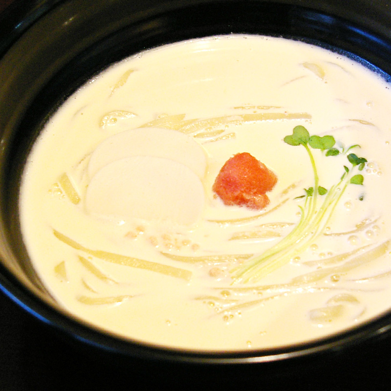 国産小麦100%で熟成手打ちした麺と、北海道産昆布・土佐清水の宗田節など厳選素材からひいた無添加出汁という、素材・製法・鮮度に徹底してこだわっています。