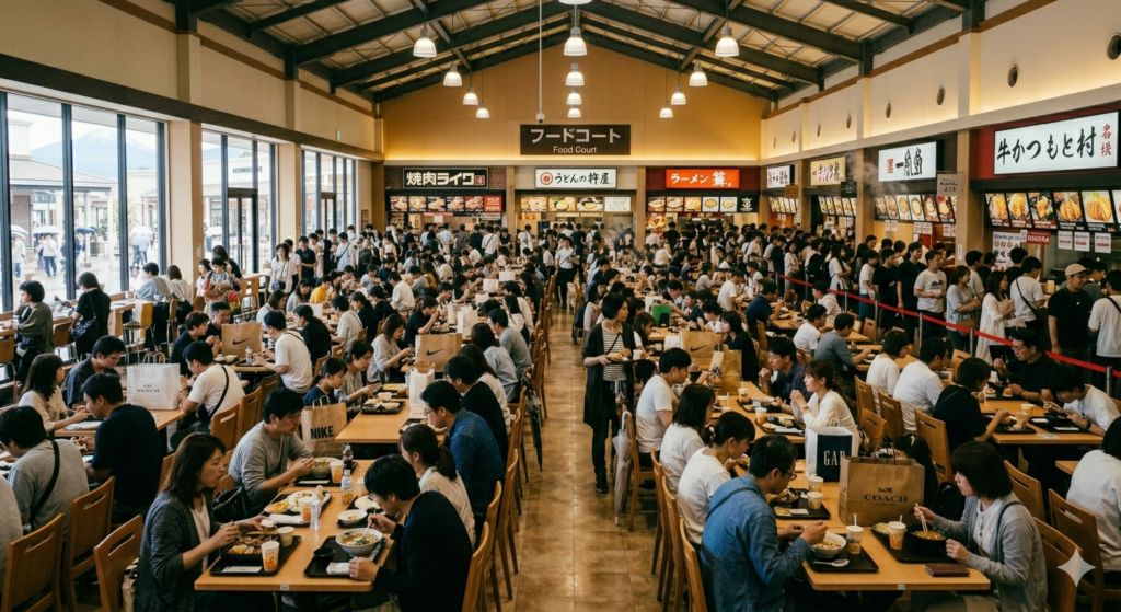特に土日や連休は「駐車場待ち1時間以上」「フードコート満席」も珍しくありません。